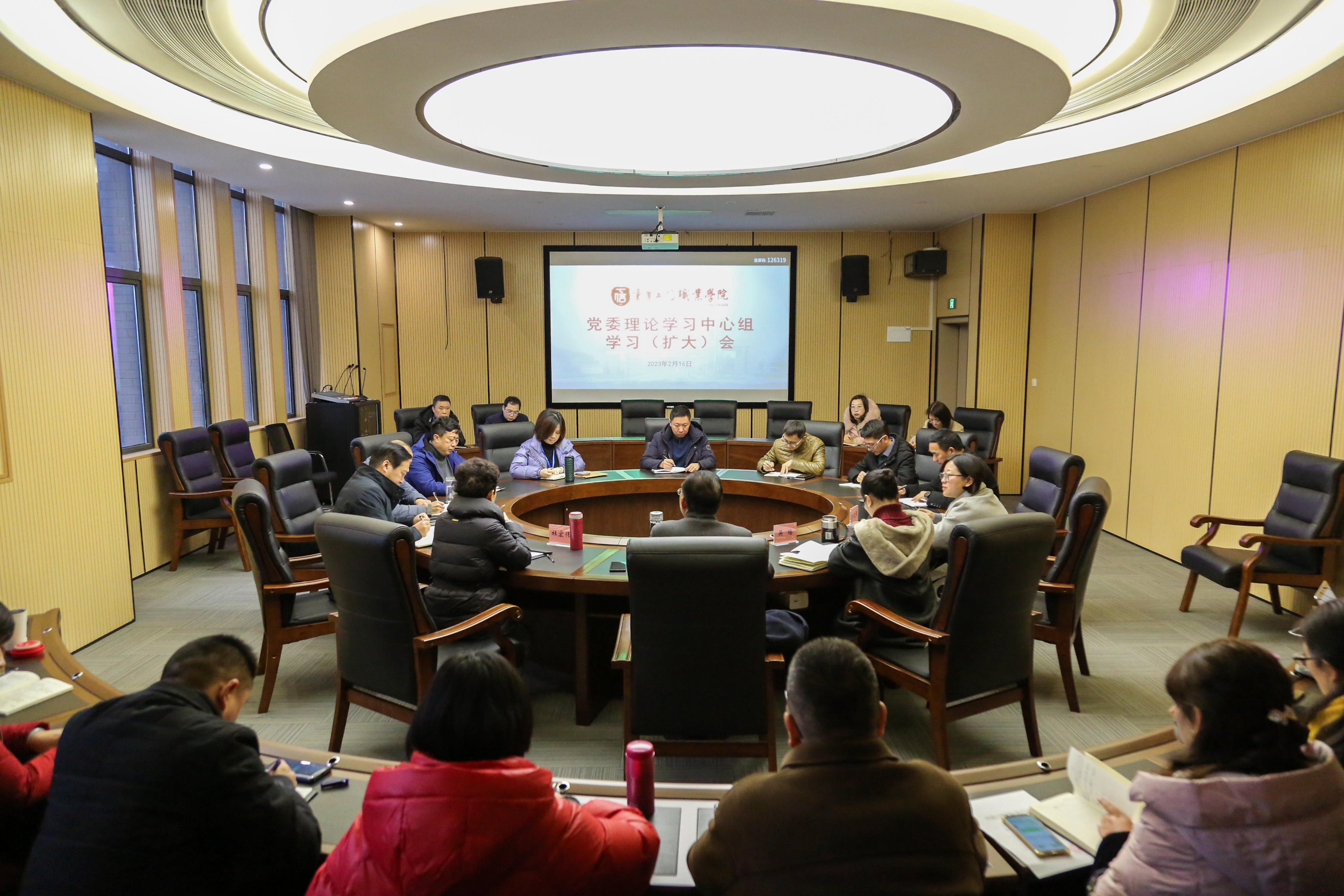 2月16日,学校举行2023年第一次理论学习中心组(扩大)学习会。专题学习习近平总书记近期重要讲话、重要文章、重要指示精神,全国、全市重要会议精神和近期重要文件。