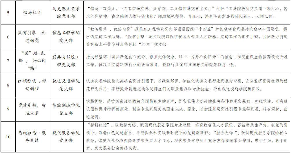中共重庆工信职业学院委员会关于公布基层党组织党建品牌创建结果的通知