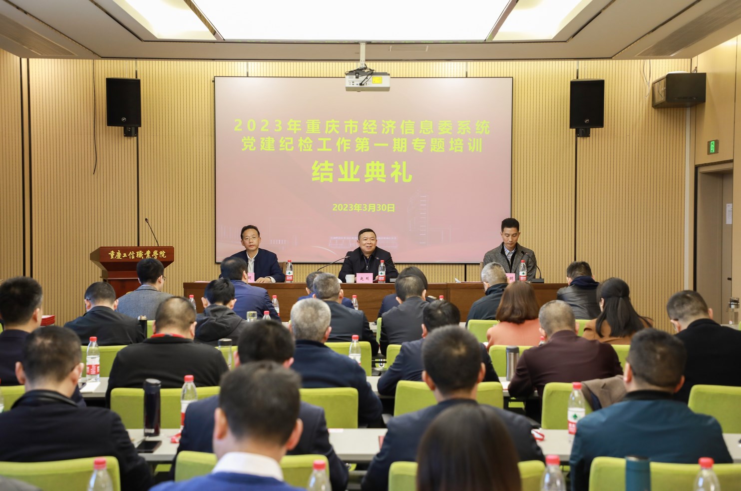 3月30日下午,2023年市经济信息委系统党建、纪检工作第一期专题培训在重庆工信职业学院圆满结业。委党组成员、直属机关党委书记赵刚出席结业仪式并讲话,委直属机关党委专职副书记、机关党办主任张学明主持会议。