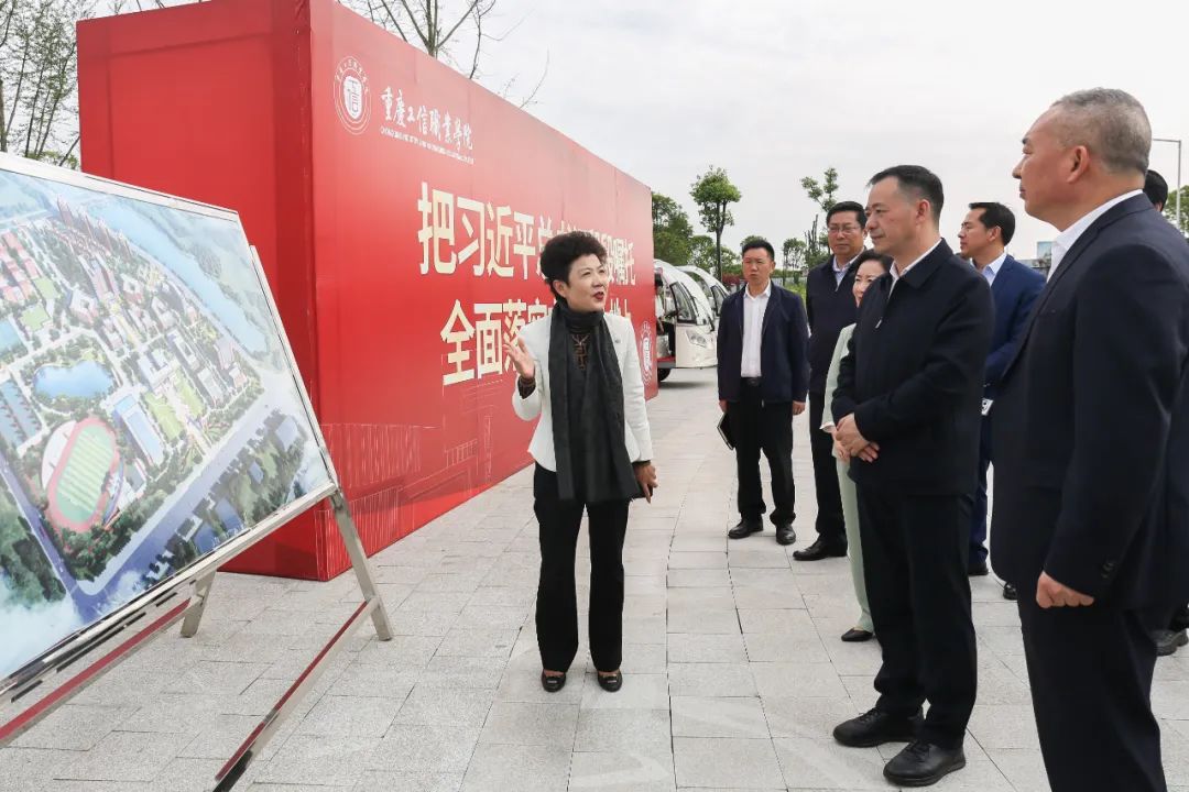 杜宏伟校长首先对各位领导的到来表示热烈欢迎,并对长寿区领导给予学校建设的大力支持与帮助表示感谢。她详细介绍了学校一期工程建设和校园运行情况,以及学校建设发展思路。