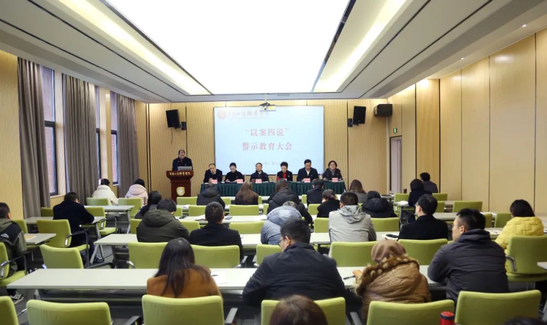 1月19日下午,重庆工信职业学院面向全体教职员工召开了2024年度“以案四说”警示教育大会,深入学习贯彻习近平总书记关于全面从严治党的重要论述和党中央关于全面从严治党的战略部署。结合我市教育系统后勤领域“以案四说”会议精神和市经济信息委相关会议精神,以反面典型为警示,用身边事教育身边人,深化以案促改、以案促治,引导全体党员、教师筑牢廉洁自律意识。纪委书记金文娟主持会议,党委书记高明讲话,其余院领导出席会议并作发言。