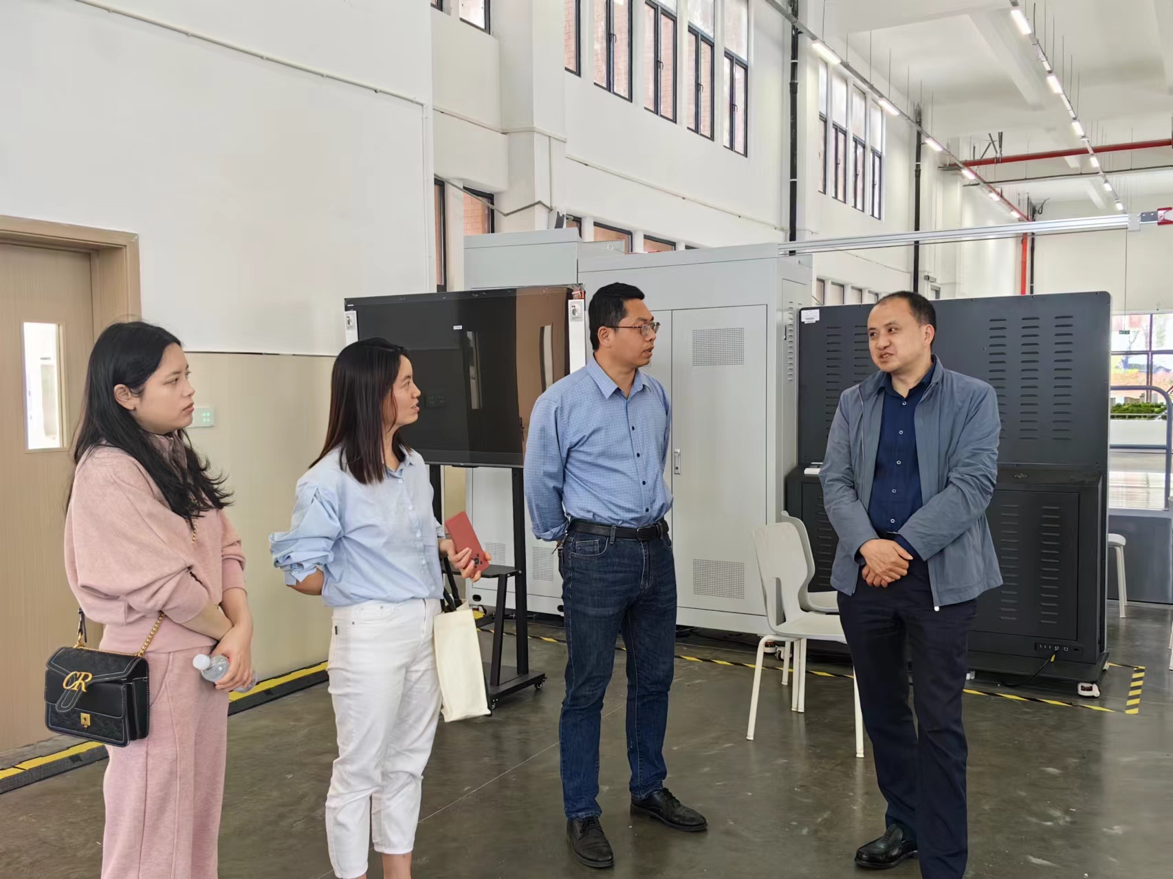 吴雷波一行首先参观了我校的教学设施与实训基地。详细了解了教室的硬件配置、课程设置及教学方法,对我校严谨的教学态度和先进的教学理念给予了高度评价。在实训基地,吴雷波一行实地查看了实践教学环境及硬件设备,对我校在实践教学方面的创新举措和取得的成果表示赞赏。