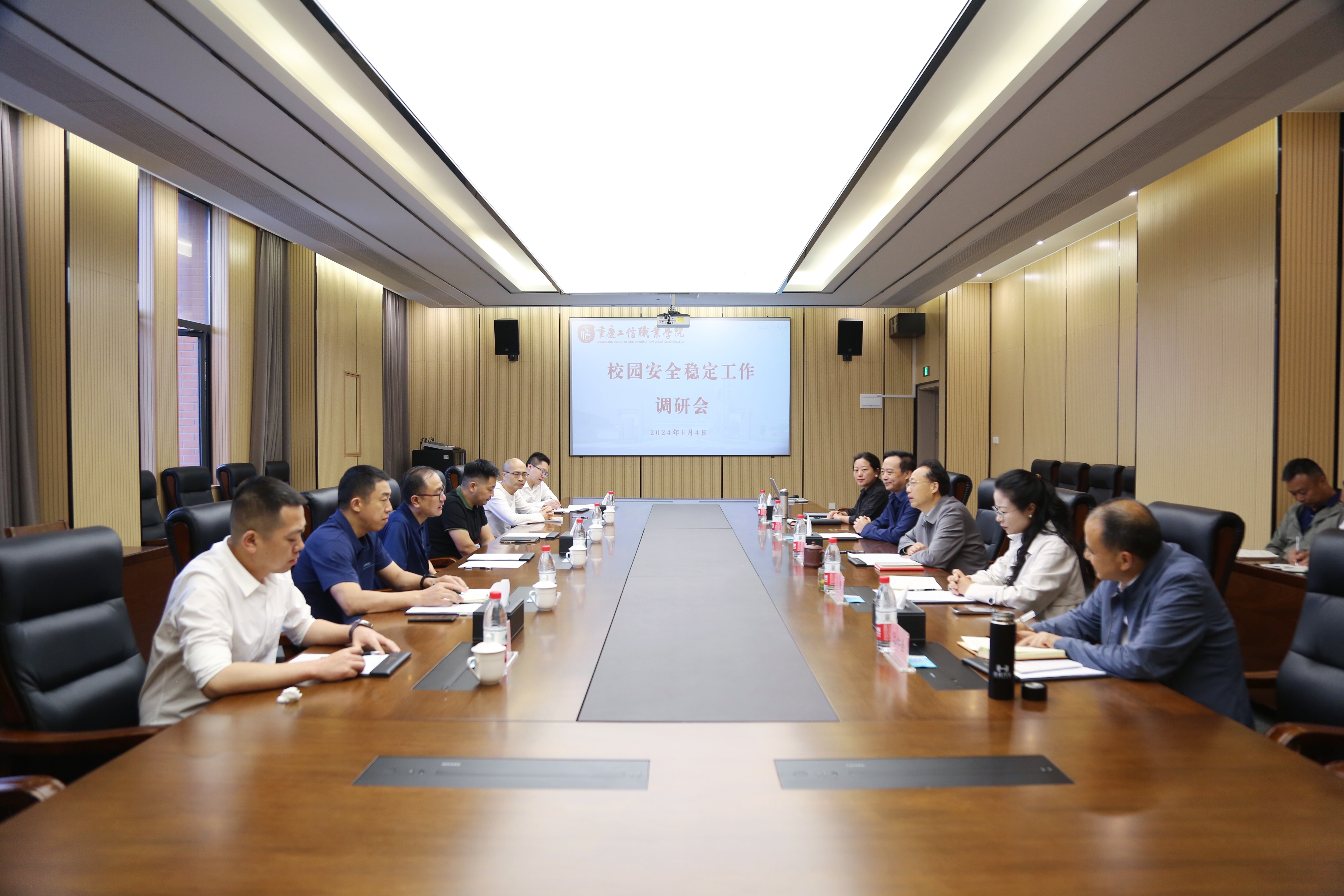 2024年6月4日上午,长寿区人民政府副区长、区公安局局长涂庆一行莅临重庆工信职业学院,就校园安全稳定工作进行了深入的调研和指导。学校在家班子成员,党政办、党委学生工作部、党委宣传部、信息中心等部门负责人陪同调研。