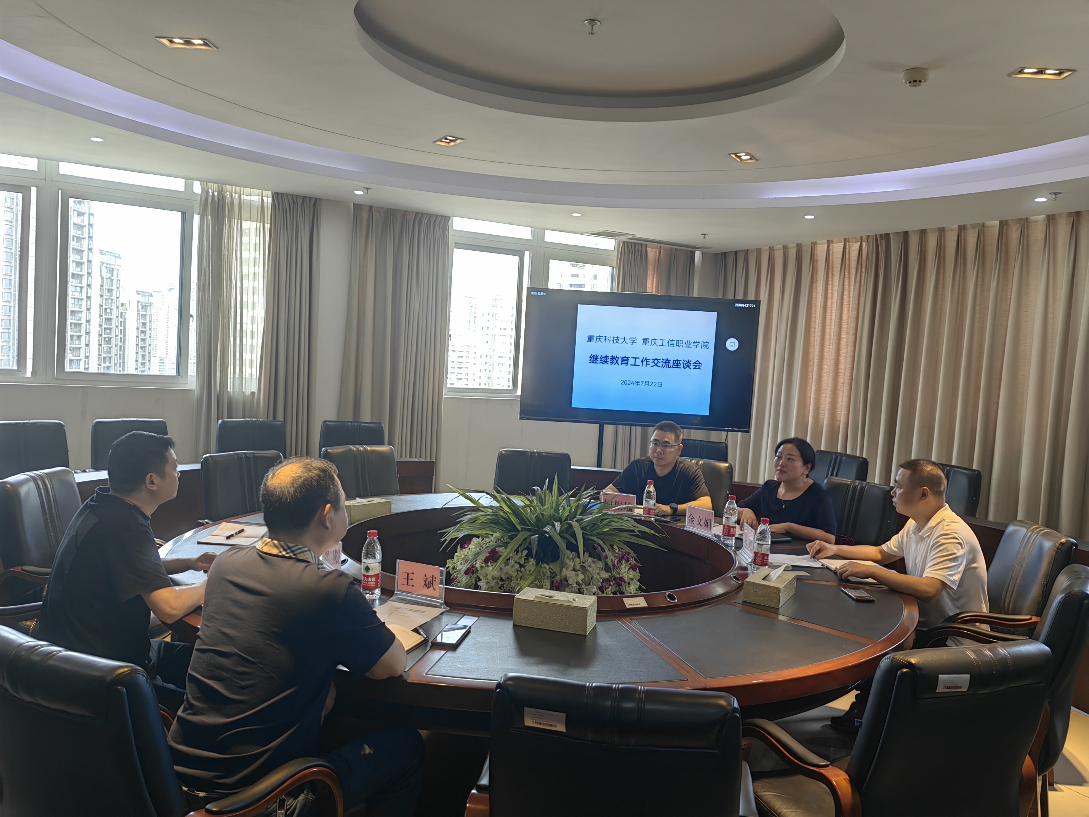 2024年7月22日,重庆工信职业学院继续教育学院与重庆科技大学继续教育学院在渝中校区召开了合作交流座谈会。重庆科技大学副处级组织员谭成、重庆工信职业学院党委委员、纪委书记金文娟等领导出席会议。