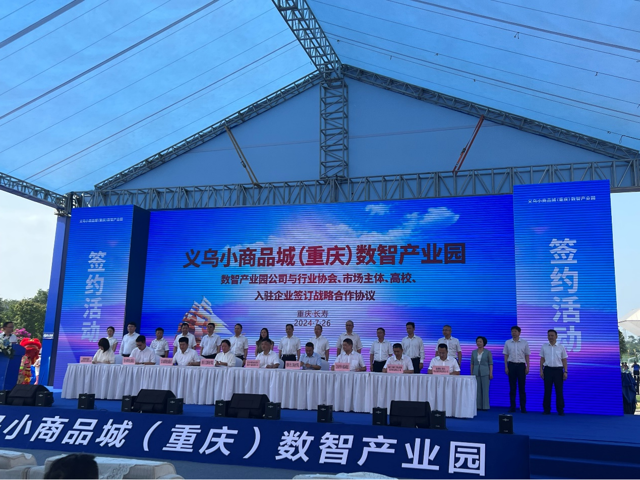 2024年7月26日,我校受邀参加2024义乌市场万里行重庆贸易对接会活动,学校与义乌小商品城(重庆)数字产业园有限公司签署校企战略合作协议,义乌小商品城(重庆)数智产业园有限公司总经理吴旻,学院纪委书记金文娟分别代表校企双方在合作协议上签字。