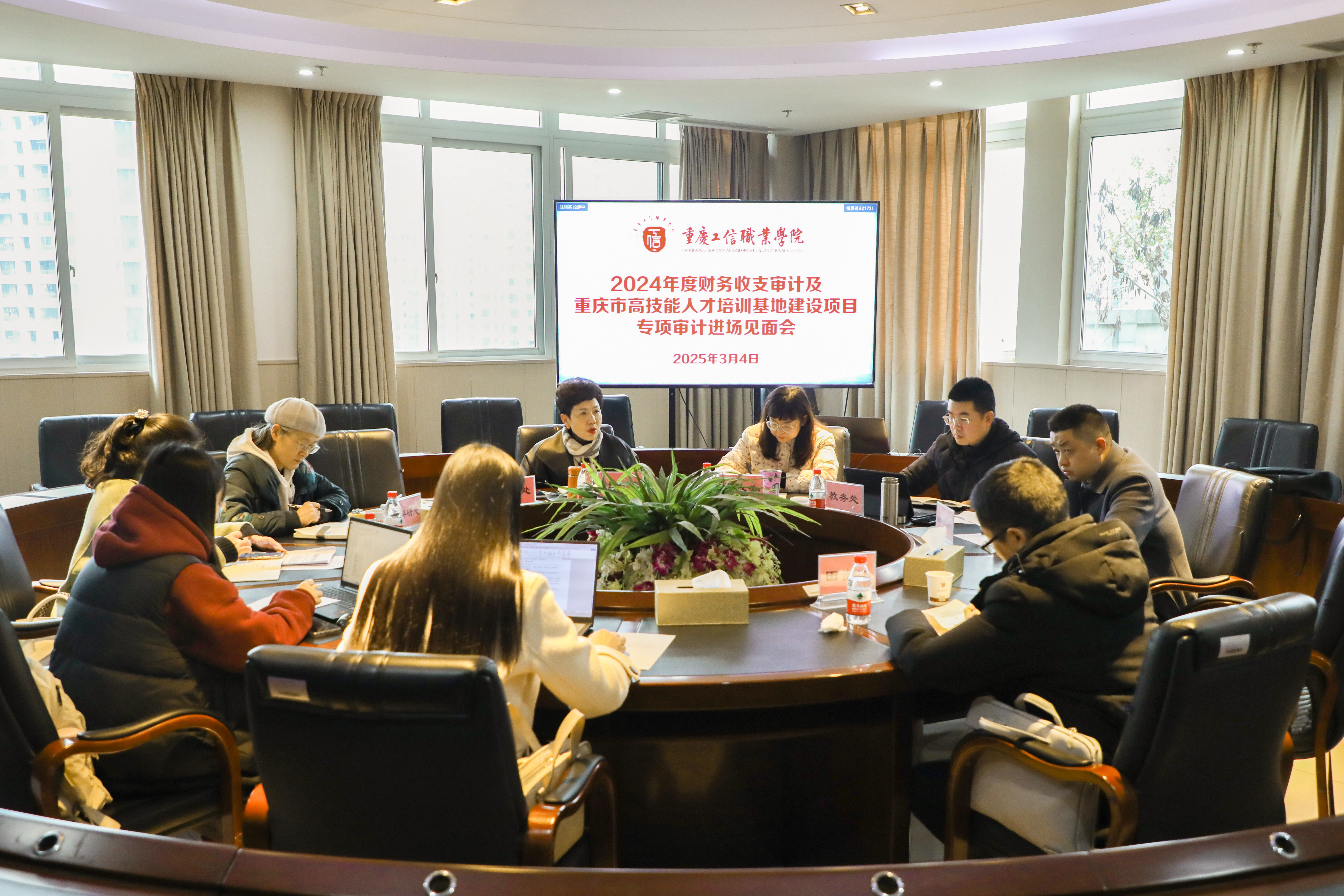 3月4日下午,2024年度财务收支及重庆市高技能人才培训基地建设项目专项审计进场见面会在渝中校区励行楼九楼会议室召开。学校党委副书记、院长杜宏伟出席会议,重庆笃信会计师事务所派驻进场人员及党政办审计工作人员、相关部门负责人参加会议。会议由党政办(审计处)负责人张文姝主持。