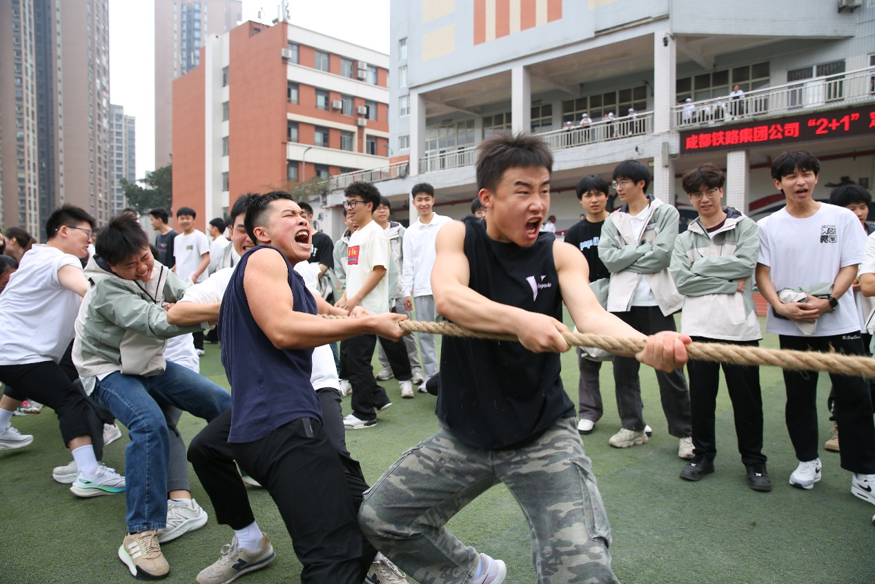 2025年4月9日,中国铁路成都局集团有限公司2025年高职生“2+1”定向培养理论培训班在重庆工信职业学院办了一场别开生面的趣味运动会。此次活动旨在丰富学员课外生活,促进心理健康,加强团队交流,让学员们在轻松愉快的氛围中释放培训压力,增进彼此友谊。本次趣味运动设有班级拔河比拼和双人运球接力两个项目,充满了趣味性和挑战性,考验了团队的手眼协调能力、默契配合以及反应速度。