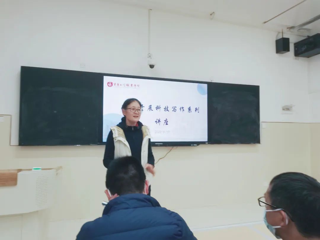 为帮助老师们提升科技写作水平,学校于11月17日晚举办了“如何开展科技写作”的专题讲座。会议邀请科研处张雁博士主讲,留守长寿校区的老师们现场聆听了讲座,其他老师云收听。会议由科研处负责人黄玉兰主持,柴彬堂副院长参加活动。