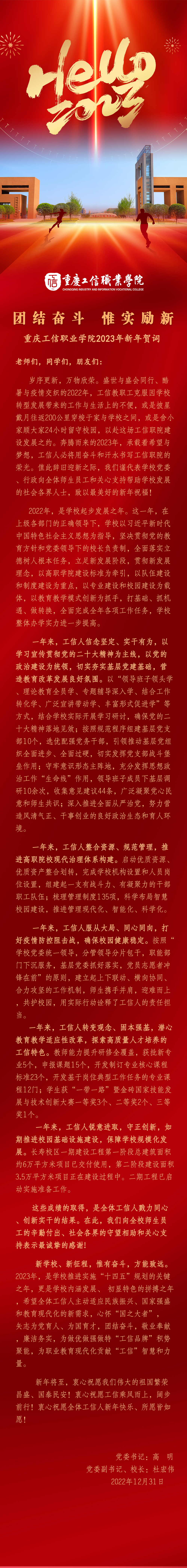 团结奋斗 惟实励新 ——重庆工信职业学院2023年新年贺词